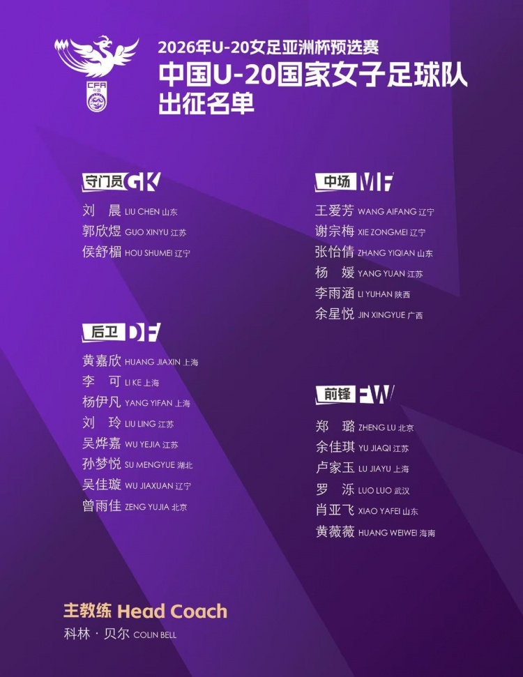 为备战本次预选赛,中国U20女足招入多名球员,其中刘晨、余星悦等曾在U17女足全国杯中有过亮眼弘扬的小将统统入选。