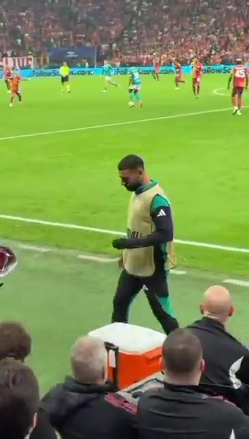 当利物浦控球时,现场55000加拉塔萨雷球迷爆发出雄伟嘘声,萨拉赫被拍到被嘘声过问,以致捂住耳朵的画面。