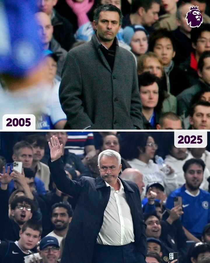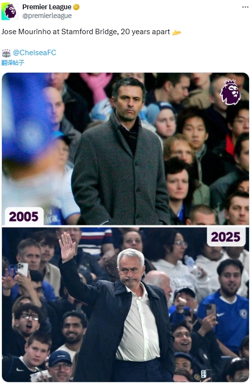 英超官推晒本菲卡主帅穆里尼奥:斯坦福桥的若泽-穆里尼奥,20年畴昔了……