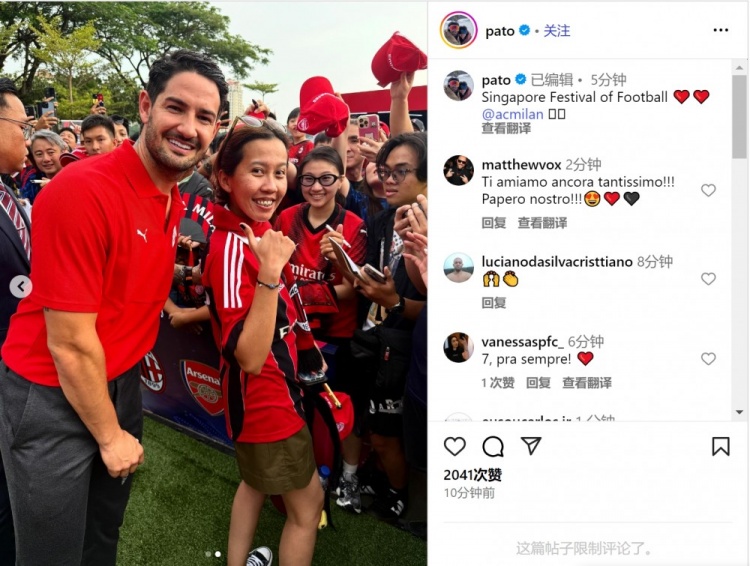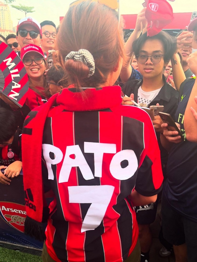 米兰将在新加坡的季前赛中对阵阿森纳,米兰名宿帕托在新加坡插足季前赛活动,晒出与球迷的合照,配文:“新加坡足球节日。”