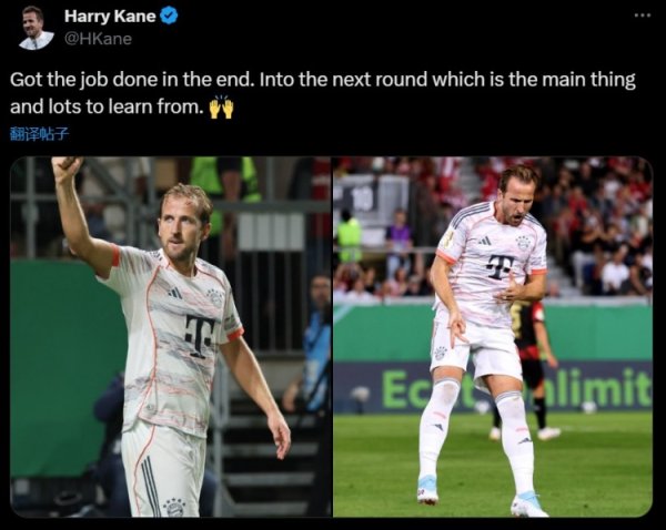 凯恩社媒:晋级下一轮是最要害的,但也有好多东西不错从中学习