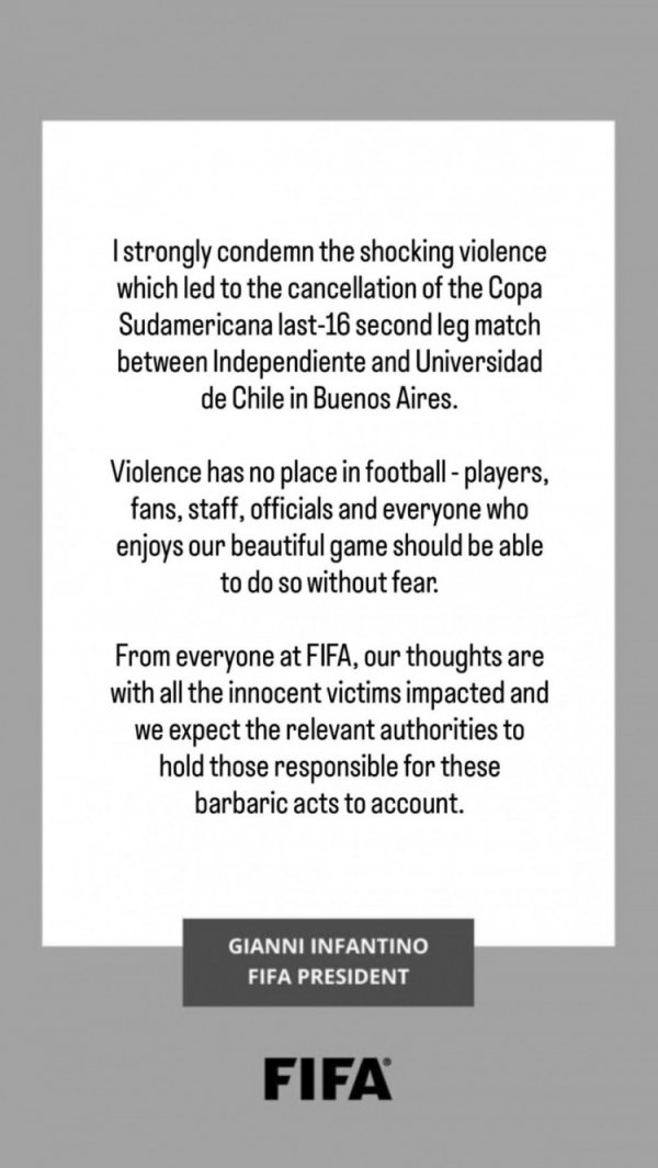 因凡蒂诺社媒:强烈责问南好意思杯暴力行动,但愿当局细腻施暴者遭殃