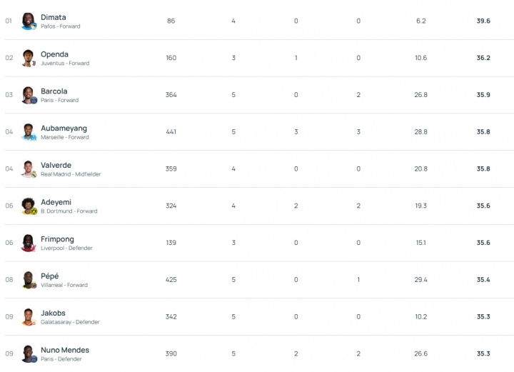 11月29日讯 把柄欧足联官网数据泄露,本赛季欧冠于今,速率最快的球员是来自帕福斯的时尚迪马塔,多位著名“快马”出当今榜单中,而也有一些球星不测莫得投入前十。