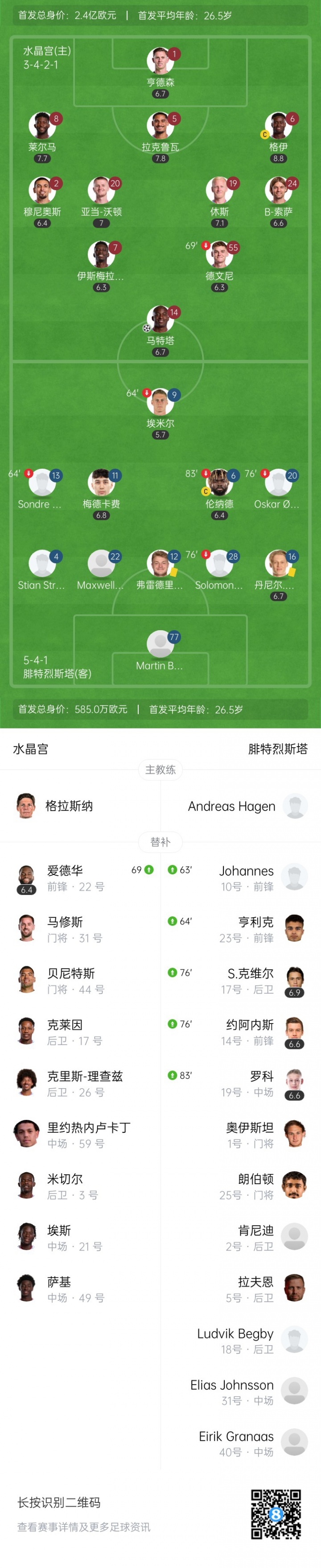 08月22日讯 欧协联附加赛首回合,水晶宫1-0小胜挪威球队腓特烈斯塔,格伊首发担任队长、埃泽缺席。赛后水晶宫主帅格拉斯纳大吐苦水,辩驳球队东谈主员衣衫破烂,不会在月底次回合前放走格伊。