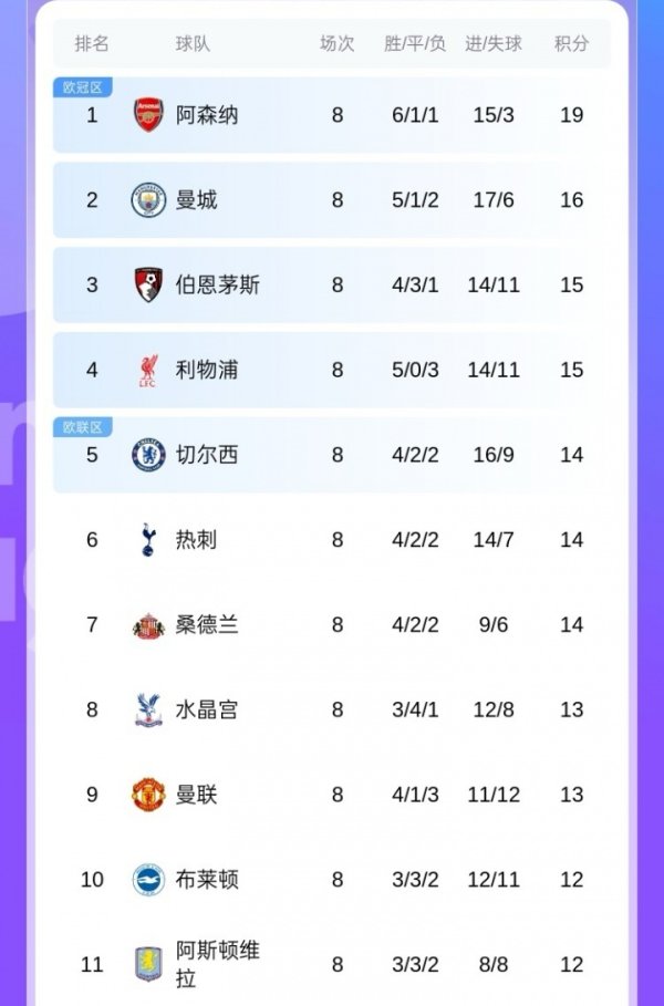 岂肯不爱!英超第2曼城到第9曼联仅差3分,华夏逐鹿+枪手3分领跑
