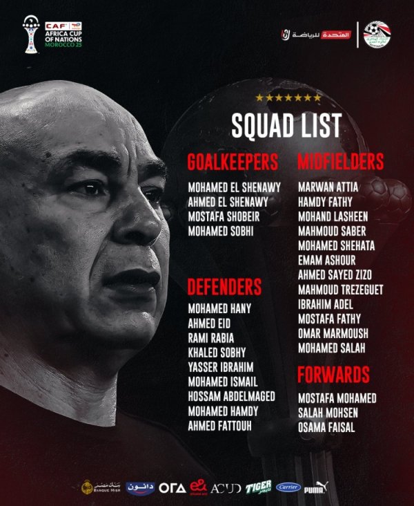 12月2日讯 埃及国度队公布非洲杯初选名单,萨拉赫、马尔穆什领衔。 埃及队非洲杯初选名单 门将:穆罕默德-艾尔希纳维(开罗国民)、艾哈迈德-艾尔希纳维(金字塔)、舒贝尔(开罗国民)、穆罕默德-索比(扎马莱克体育) 后卫:哈尼(开罗国民)、艾哈迈德·艾德(马斯里)、拉比亚(阿尔艾因)、哈树德-索比(马萨雷)、亚西尔·易卜拉欣(开罗国民)、伊斯迈尔(扎马莱克体育)、梅吉德(扎马莱克体育)、哈姆迪(金字塔)、福图赫(扎马莱克体育) 中前场:阿提亚(开罗国民)、哈姆迪·法特希(沃克拉......查看更多