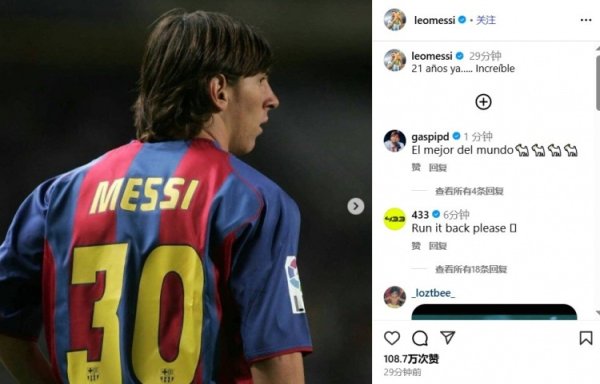 半小时超百万赞!梅西记忆巴萨首秀21周年:21年了,难以置信