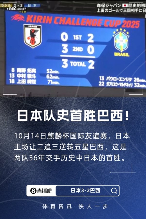 日本队史首胜巴西!14次交手1胜2平11负,日本闭幕对巴西36年不堪