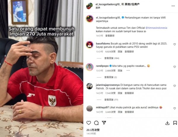 无缘2026寰宇杯!前印尼国脚月旦马宁:1东说念主就能蹂躏2.7亿东说念主的梦思