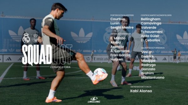 皇马对阵黄潜大名单:姆巴佩、维尼修斯在列,米利唐讲究