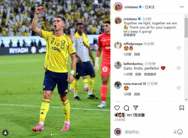 C罗社媒庆祝告捷:沿途战争沿途赢💪让咱们继续赢下去!