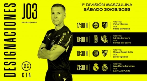 西甲第三轮裁判安排:何塞-马里亚-桑切斯司法皇马VS马洛卡
