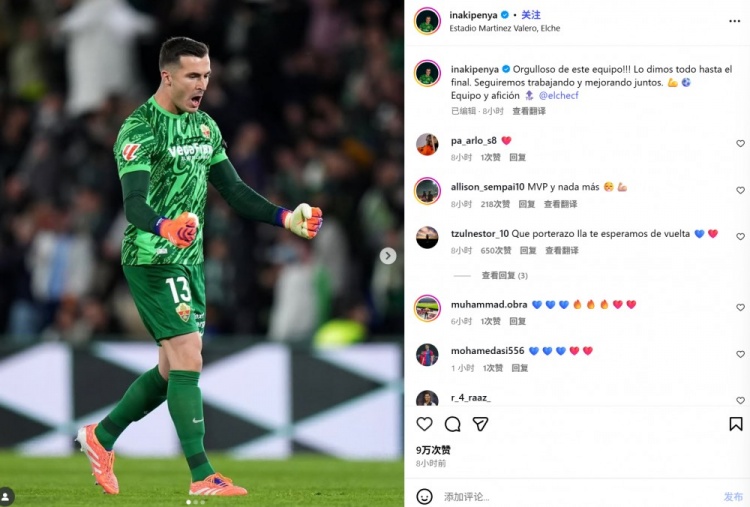 屡次扑救平皇马!外租门将佩尼亚社媒缅思,巴萨球迷纷繁留言援救