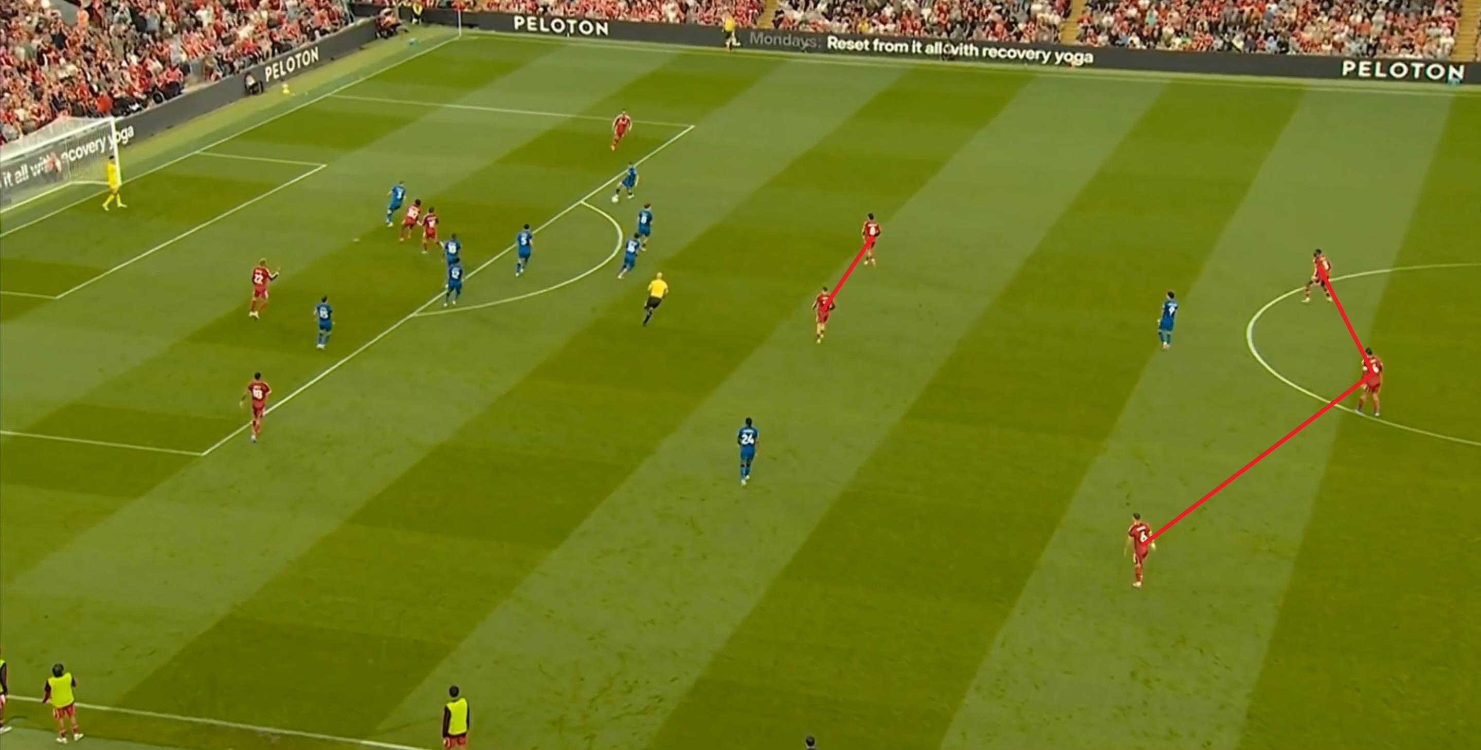 他的跑动和驻扎本领,虽然要比赫拉芬贝赫更好,但在萨拉赫更不会回防的本赛季,你不可能指望维尔茨像上赛季的索博斯洛伊那样回追和驻扎,是以在比赛第6分钟,伯恩茅斯通过转念打出了这么一次遑急: