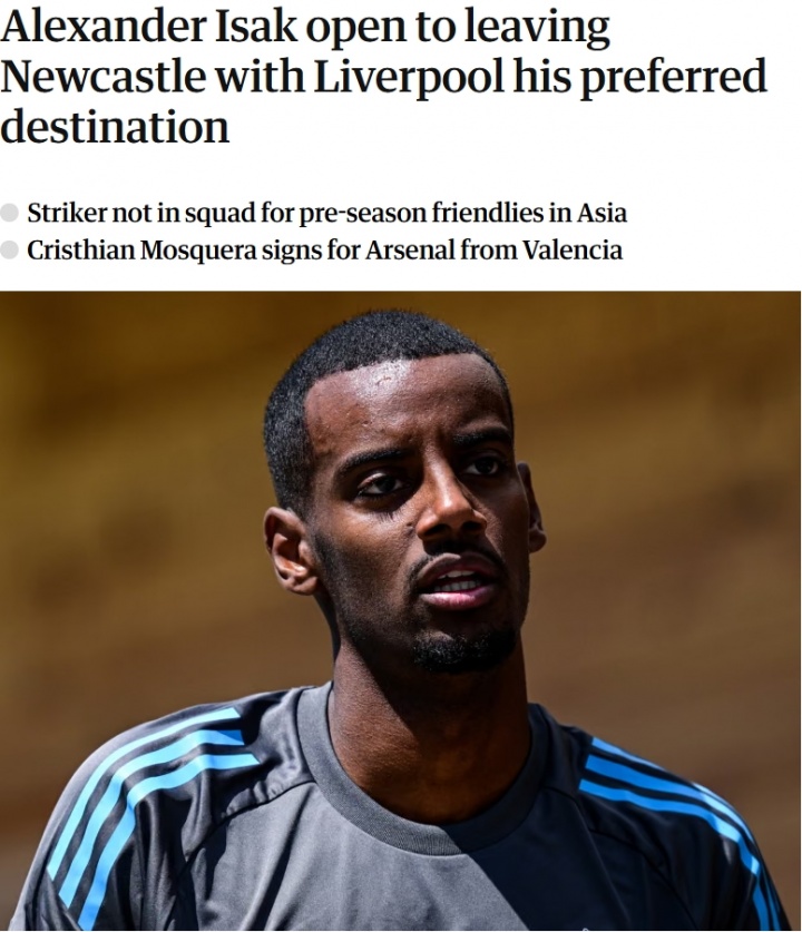 卫报:利物浦是伊萨克的首选,但今夏需要卖东谈主能力签下他
