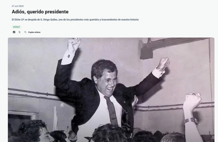 埃尔切前主席迭戈-基莱斯-纳瓦罗升天,享年84岁