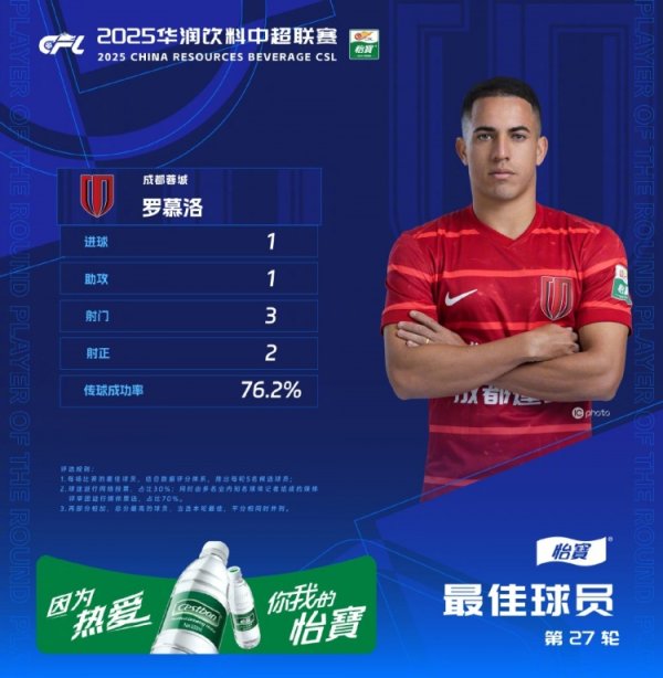 10月22日讯 中超联赛官方公布了第27轮最好球员,成齐蓉城外助罗慕洛传射立功,顺利当选。 官方实质如下 在2025华润饮料中超联赛第27轮比赛中,成齐蓉城足球俱乐部主场迎战梅州客家。上半场第18分钟,罗慕洛在禁区前沿送出直塞助攻队友破门,匡助球队首开记载。第82分钟,罗慕洛得球后在禁区内左脚低射破门锁定胜局。最终,罗慕洛传射立功,匡助球队3比1降服敌手。 在第27轮的官方最好球员评比中,罗慕洛在媒体评审才能获取了9张第一顺位选票和8张第二顺位选票,以60分名纪律一;在球迷投......查看更多