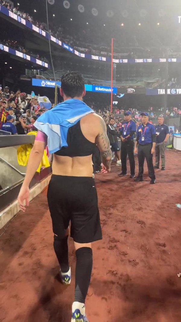 赛后梅西给别称残疾球迷签名,随后在球迷忻悦声中离场