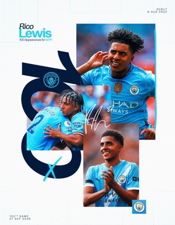 刘易斯替补登场迎曼城糊口百场里程碑,此前孝顺5球10助攻