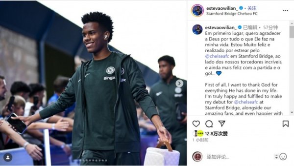 埃斯特旺社媒:很欢笑在斯坦福桥献艺切尔西首秀,况且得到进球