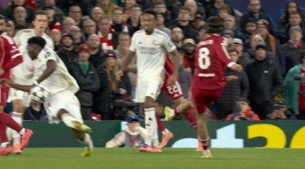 11月05日讯 利物浦vs皇马第31分钟,索博敲门击中琼阿梅尼手臂,裁判查验点球,VAR介入。 随后裁判看过VAR后莫得判罚点球!......查看更多