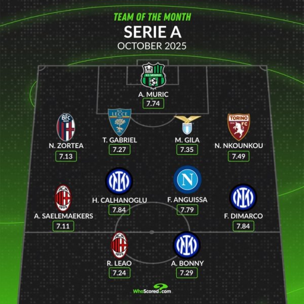 WhoScored意甲10月最好威望:莱奥、博尼、迪马尔科、恰20在列