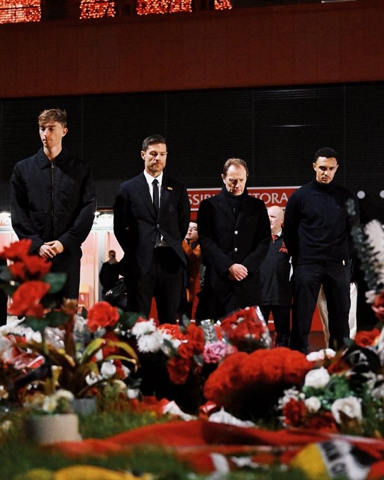 请安若塔,阿隆索、赫伊森、阿诺德一转赶赴安菲尔德追想碑前献花