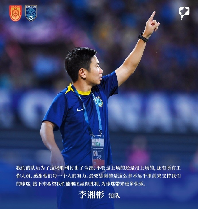 领队李湘彬:咱们的队员为了这场得胜付出了一都,无论是上场的已经没上场的,还有通盘职责主谈主员,感谢他们每一个东谈主的辛苦。最要感谢的是这样多不远沉前来援救咱们的球迷,接下来但愿咱们能不息取得得胜,为球迷带来更多餍足。
