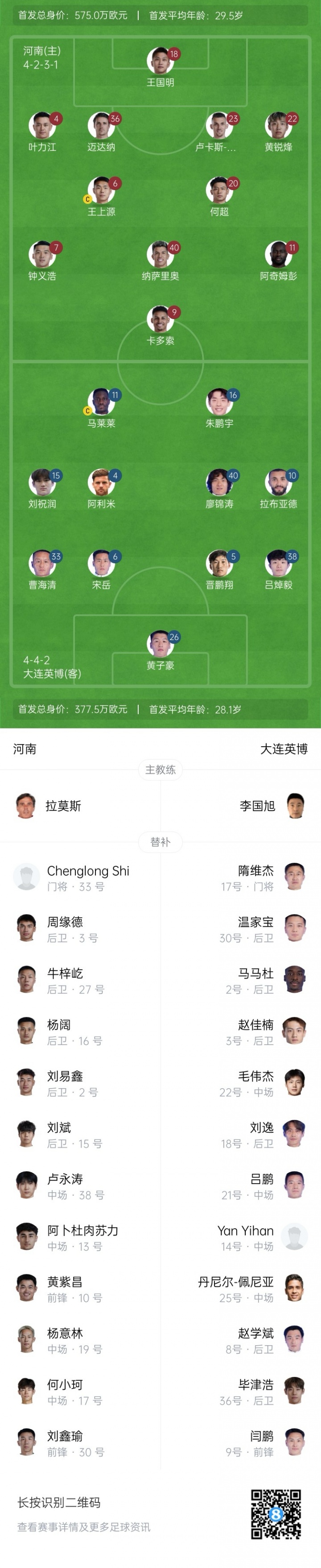 08月24日讯 北京时刻19:35,中超第22轮,河南主场对阵大连英博。赛前,两边首发出炉!