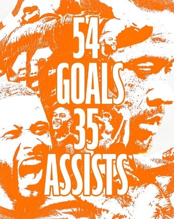 如今,德佩仍是为荷兰打进54球并送出35次助攻,两项数据均位居队史榜首,况兼他看起来仍将增多我方的进球和助攻数目。