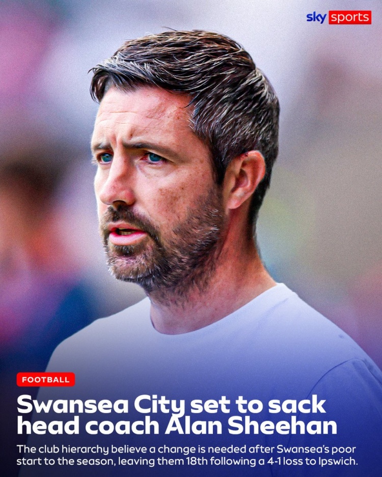 11月11日讯 天外体育音书,斯旺西准备解老板陶冶艾伦·希恩。