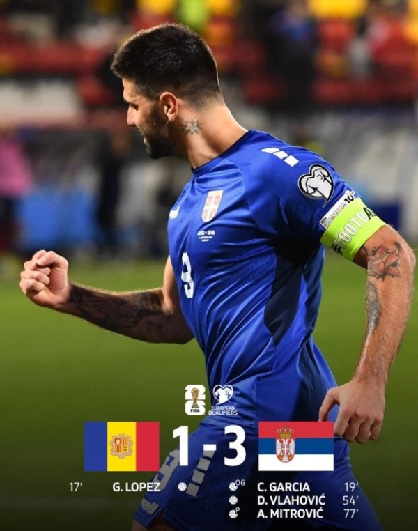 世初赛-塞尔维亚3-1客胜安说念尔 弗拉霍维奇破门米特洛维奇点射