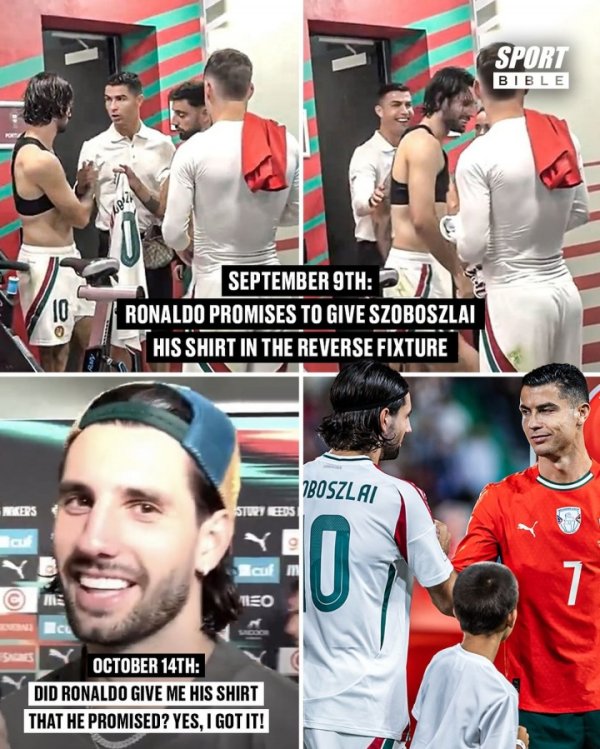 圆梦☺️索博赛后拿到偶像C罗球衣,前次找C罗换球衣时被奉告没了