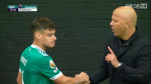 莫得受伤景象!科尔克兹第38分钟被换下,斯洛特场边向他讲明注解根由