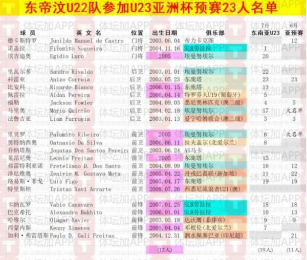 体坛:东帝汶U22以东南亚锦标赛威望为班底,独一干事球员归队
